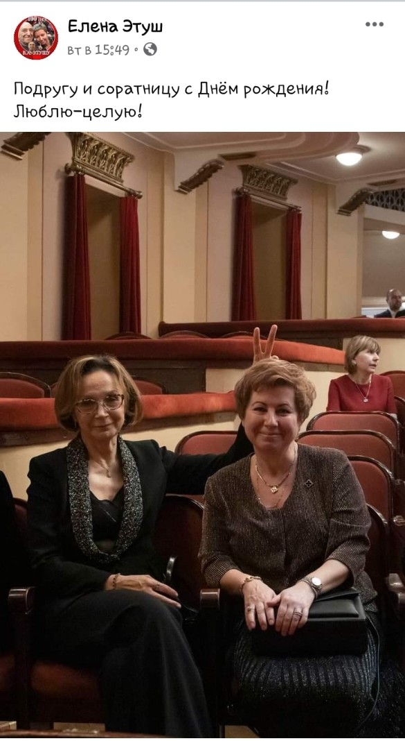В день рождения Купченко Елена Этуш поделилась весёлым кадром, сделанным за кулисами театра имени Евгения Вахтангова. На фото Ирина с улыбкой изображает «рожки» над головой подруги. «Люблю-целую! С днём рождения, родная!» — сопроводила снимок Елена.