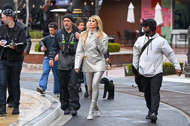 51-летняя Хайди появилась перед камерами в обтягивающих серебристых брюках и ботильонах на высоком каблуке. Дополнила ансамбль модель пиджаком с золотой розой, которая придала образу роскошный акцент. Ее стиль, как всегда, оказался смелым и запоминающимся.