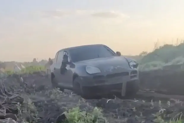 На участке спецоперации зафиксирован Porsche Cayenne, используемый подразделением ВС РФ. Машина премиум-класса, вопреки ожиданиям, оказалась в эпицентре боевых задач. В ролике видно, как БМП и багги буксуют в грязи, тогда как немецкий кроссовер уверенно преодолевает препятствия. Смех бойцов за кадром подчеркивает абсурдность и дерзкий контраст ситуации.