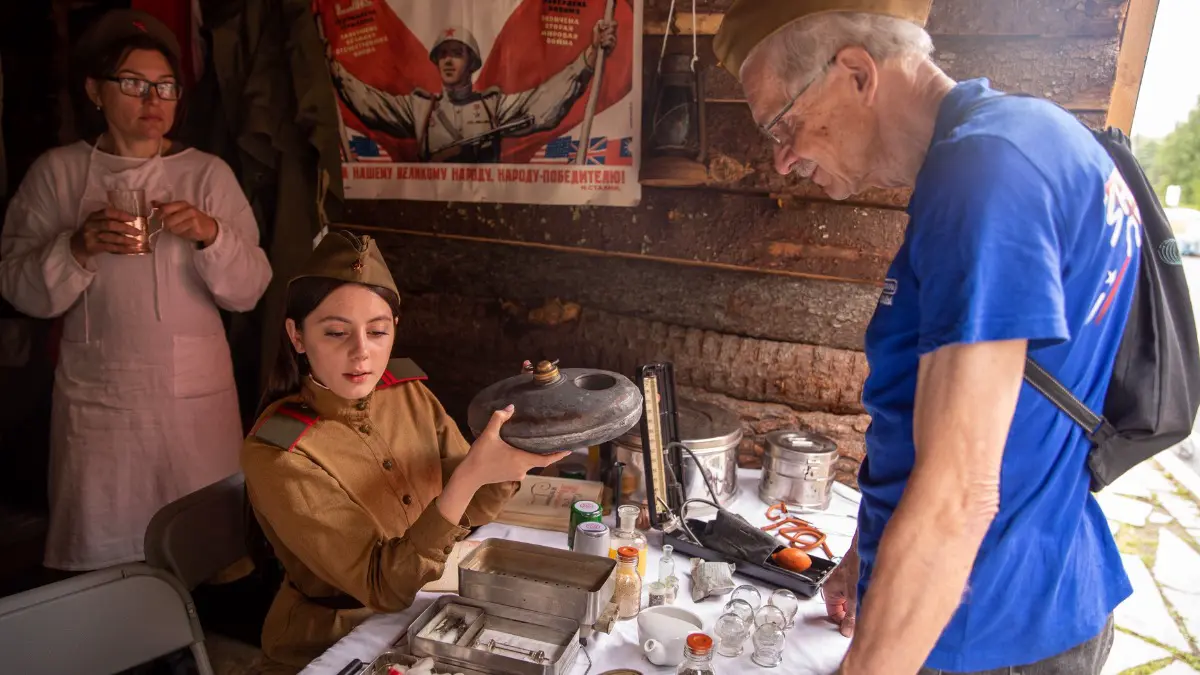На импровизированной площадке «Военно-полевой госпиталь» гостей встречала реконструктор Анжелика Асютина — с первых минут ее рассказ погружал в атмосферу бесконечной борьбы за жизни на фронте. Участники сами брали в руки старинные медицинские инструменты и учились, как правильно наложить повязку, использовать зажимы и даже проводили стилизованные операции. Здесь у детей и взрослых дрожали пальцы от волнения, ведь из уст Анжелики звучали истории о том, как в окопах и лесных операционных спасали солдат буквально на последних силах.