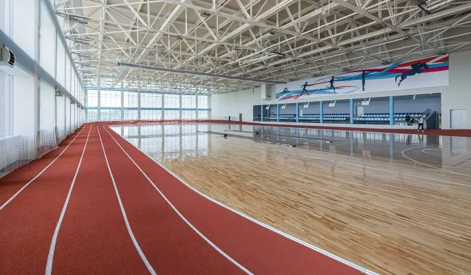 Спортивное пространство продумано до мелочей: здесь есть все необходимое для эффективных тренировок и проведения состязаний. Круговая и стометровая спринтерская дорожки, секторы для прыжков в длину, высоту с шестом, тройных прыжков, толкание ядра, зона метания снарядов в сетку. В здании расположились современный тренажерный зал, инфракрасная сауна, массажные кабинеты, комментаторские и административные помещения, зона допинг-контроля. Трибуны рассчитаны на 280 болельщиков, а система фотофиниша обеспечивает точность результатов.