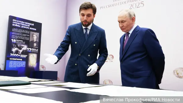 В Кремле прошёл очередной съезд Русского географического общества, который стал значимым событием для историков, исследователей и всех, кто интересуется географией России. В рамках этого мероприятия вниманию Владимира Путина были представлены ценные архивные материалы — карты, уникальные фотографии, исторические документы, а также редкие экспонаты, найденные в ходе экспедиций, организованных обществом.