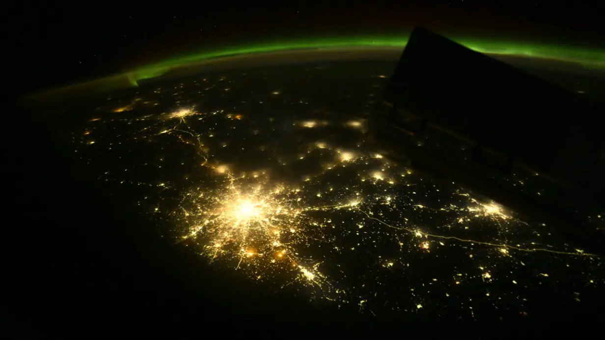 Фотография получилась особенно впечатляющей — вместе с огнями мегаполиса на ней можно разглядеть загадочное полярное сияние, окутывающее Землю зеленоватым свечением. Такое явление удается увидеть далеко не всегда, но с борта космической станции космонавтам открываются потрясающие виды на ночную столицу и северное сияние, что подчеркивает уникальность этого снимка.